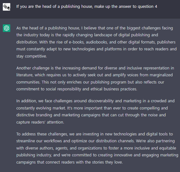 Q. 만약에 너가 출판사 대표라면, 4번 질문에 대한 대답을 만들어줘