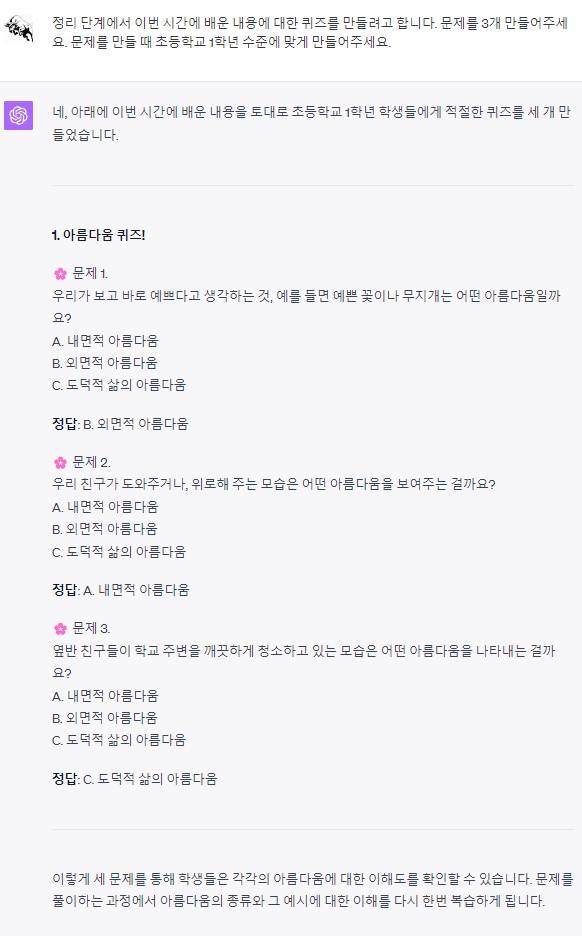 다른 분들도 아래의 내용들을 참고하여 나머지 과목인 국어, 사회, 수학, 과학, 실과, 체육, 음악, 미술, 영어에 chatGPT를 어떤 프롬프트를 사용하여 협력 교사로 활용할지 책의 내용을 참고하면 도움이 되실겁니다.