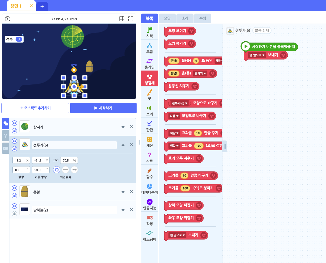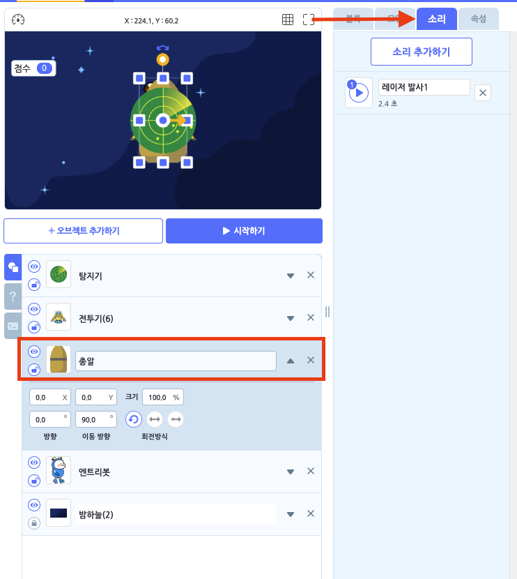 실습은 57p의 '미사일 쏘기'를 진행하였습니다.