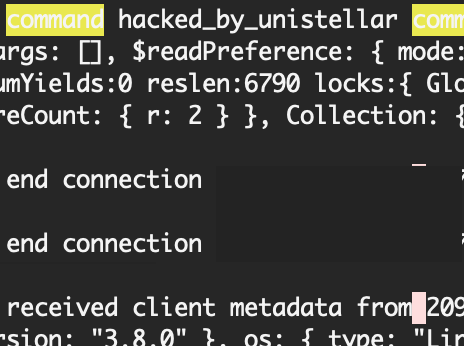 오랜만에 mongodb에서 작업을 하려고 계정을 확인해보니 db들이 사라지고 왠 hacked_by_unistellar db가 존재했다...