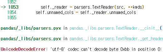 python에서 pandas의 read_csv을 하다가 만난 에러이다.