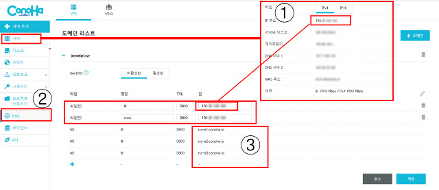 2. 도메인 업체에 hosting업체에서 만든 dns 주소와 이름을 넣기